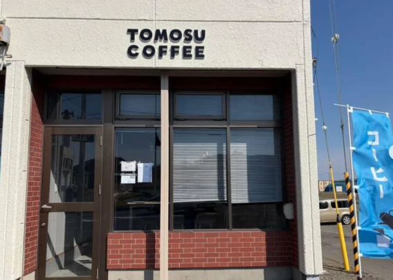 TOMOSU COFFEEのロゴ、青い横断幕が目印です。